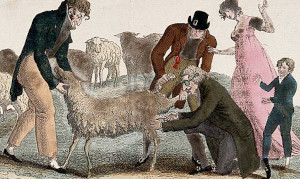 ![]() | Pictured: Gandhi comparing an illegal grain of salt he counterfeited to an official grain of salt stamped by the British East India Company. For this offense, he was sentenced to eight months in prison without the possibility of salt. |
