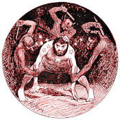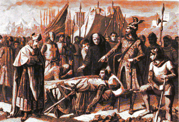 ![]() An old illustration circa 1861 titled "Burial of the Moncadas" depicting some significant event from the Battle of Portopí.**** |