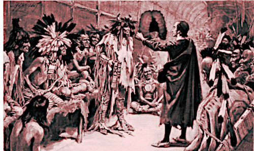 Some here in the U.S. criticize white Europeans -- among a whole host of other atrocities and nothing positive -- for exposing the indigenous peoples to diseases the likes of which they had never before experienced; many of which being fatal, such as smallpox and measles. Christian missionaries were among those who brought these diseases which were disguised as bookmarks in their Bibles, along with their evil, foreign magic. One such individual was Isaac Jogues (1607-1646), a French Jesuit priest who shared his white, diseased Gospel with the Iroquois, Huron, Mohawk, Oijbwe, and Algonquian tribes in the New France territories of the American Great Lakes region. Although warned of the tortuous welcome that awaited him by the Native Americans, he gladly took the eight-week voyage to the New World, where he was met with blame for bringing an epidemic which he himself was also stricken with. However, he and his fellow missionaries managed to win toleration from the natives for the next six years, until rumors arrived that they were driven from Europe for poisoning wigs with virulent powder. Finding relative peace among other tribes who had no need of powdered wigs, they were eventually captured by members of the Mohawk Nation who had procured wigs from French traders which were poisoned with virulent powder that proved lethal to those who proudly wore them. Believing the rumors, they blamed the Jesuits and, according to Jogues from this source, tortured them in these manners: