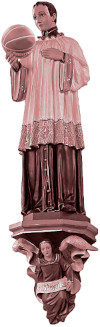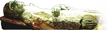 We do, however, speak a message of wisdom among the mature, but not the wisdom of this age or of the rulers of this age, who are coming to nothing. No, we declare God's wisdom, a mystery that has been hidden and that God destined for our glory before time began. None of the rulers of this age understood it, for if they had, they would not have crucified the Lord of glory. However, as it is written: "What no eye has seen, what no ear has heard, and what no human mind has conceived" -- the things God has prepared for those who love him -- these are the things God has revealed to us by his Spirit. The Spirit searches all things, even the deep things of God. (1 Corinthians 2:6-10, NIV) | ![]() Adrian's wife, Natalia, made off with one of his hands after his execution. | ![]() Casimir is depicted with three hands because he was so giving. | ||