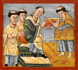Chapter 20:3-5: From the time at which they are set apart (those who are chosen who are to receive baptism), place hands upon them daily so that they are exorcised. When the day approaches on which they are to be baptized, let the bishop exorcise each one of them, so that he will be certain whether each has been purified. If there are any who are not purified, they shall be set apart. They have not heard the Word in faith, for the foreign spirit remained with each of them. Let those who are to be baptized be instructed that they bathe and wash on the fifth day of the week. If a woman is in the manner of women, let her be set aparta and receive baptism another day. Chapter 18: When the teacher finishes his instruction, the catechumens (new believers) will pray by themselves, separate from the faithful. The women will also pray in another place in the church, by themselves, whether faithful women or catechumen women. After the catechumens have finished praying, they do not give the kiss of peace, for their kiss is not yet pure. But the faithful shall greet one another with a kiss, men with men, and women with women. Men must not greet women with a kiss. All the women should cover their heads with a pallium (originally a wide band of wool cloth, later to be worn only by popes and bishops), and not simply with a piece of linen, which is not a proper veil. Chapter 21:9-20: When the elder takes hold of each of them who are to receive baptism, he shall tell each of them to renounce, saying, "I renounce you Satan, all your service, and all your works." After he has said this, he shall anoint each with the Oil of Exorcism, saying, "Let every evil spirit depart from you." Then, after these things, the bishop passes each of them on nude to the elder who stands at the water. They shall stand in the water naked. A deacon, likewise, will go down with them into the water. When each of them to be baptized has gone down into the water, the one baptizing shall lay hands on each of them, asking, "Do you believe in God the Father Almighty?" And the one being baptized shall answer, "I believe." He shall then baptize each of them once, laying his hand upon each of their heads. Then he shall ask, "Do you believe in Jesus Christ, the Son of God, who was born of the Holy Spirit and the Virgin Mary, who was crucified under Pontius Pilate, and died, and rose on the third day living from the dead, and ascended into heaven, and sat down at the right hand of the Father, the one coming to judge the living and the dead?" When each has answered, "I believe," he shall baptize a second time. Then he shall ask, "Do you believe in the Holy Spirit and the Holy Church and the resurrection of the flesh?" Then each being baptized shall answer, "I believe." And thus let him baptize the third time. Afterward, when they have come up out of the water, they shall be anointed by the elder with the Oil of Thanksgiving, saying, "I anoint you with holy oil in the name of Jesus Christ." Then, drying themselves, they shall dress and afterwards gather in the church. Chapter 23: Widows and virgins will fast often and pray for the Church. The elders will fast when they want to, as is the same for the laypeople. The bishop may not fast except when all the people fast. For often someone will bring an offering, and it cannot be rejected. For whenever the bishop breaks the bread, he must partake of it, and eat it with all who are there. Chapter 28:3-4: When you eat, eat sufficiently and not to excess, so that the host may have some left that he can then send to someone as leftovers of the saints, so that the one to whom it is sent may rejoice. Let the guests eat in silence, without arguing, saying only what the bishop allows. If someone asks a question, it shall be answered. When the bishop answers, all shall remain silent, praising him modestly, until someone else asks a question. Chapter 32: These are the fruits which he shall bless: the grape, fig, pomegranate, olive, pear, apple, blackberry, peach, cherry, almond, and plum. But not the pumpkin, melon, cucumber, onion, garlic, or any other vegetable. Sometimes flowers also are offered. The rose and lily may be offered, but no other flowers. With all foods, give thanks to the Holy God, eating them to his glory. Chapters 35-38: The faithful, as soon as they wake up and are risen, before beginning work, shall pray to God, and then go to their work. But if there is any instruction in the Word, they shall give this preference and go there to hear the Word of God for the strengthening of their souls. They shall be zealous to go to the church, where the Spirit flourishes. The faithful shall be careful to partake of the eucharist before eating anything else. For if they eat with faith, even though some deadly poison is given to them, after this it will not be able to harm them. All shall be careful so that no unbeliever tastes of the eucharist, nor a mouse or other animal, nor that any of it falls and is lost. For it is the Body of Christ, to be eaten by those who believe, and not to be scorned. Having blessed the cup in the Name of God, you received it as the antitype of the Blood of Christ. Therefore do not spill from it, for some foreign spirit to lick it up because you despised it. You will become as one who scorns the Blood, the price with which you have been bought. Chapter 41:5-15, 17: If you are at home, pray at the third hour and praise God. If you are elsewhere at that time, pray in your heart to God. For in this hour Christ was seen nailed to the wood. And thus in the Old Testament the Law instructed that the shewbread be offered at the third hour as a symbol of the Body and Blood of Christ. And the sacrifice of the irrational lamb was a symbol of the perfect Lamb. For Christ is the Shepherd, and he is also the bread which descended from heaven. Pray also at the sixth hour. Because when Christ was attached to the wood of the cross, the daylight ceased and became darkness. Thus you should p