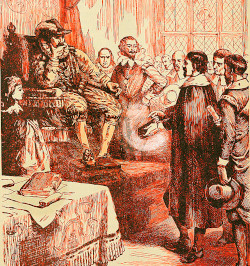 When last we left our intrepid Pilgrim folk, they were just landed at Cape Cod in the Year of Our Lord 1620. We now continue with William Bradford's harrowing account of Plymouth Plantation, brought to you by Project Gutenburg and sponsored by Lotronex, for those who suffer from irritable bowel syndrome. Warning: Lotronex may cause serious gastrointestinal side effects including ischemic colitis and severe constipation that may need to be treated in a hospital and may rarely cause death. After a sollemne meeting and a day of humilliation to seeke ye Lord for his direction, the loyall subjects of our dread soveraigne Lord, King James, by ye grace of God, of Great Britaine, Franc, and Ireland, begune some small cottages for their habitation and as time would admitte, they mette and consulted of lawes and orders. In these hard and difficulte beginings they found some discontents and murmurings arise amongst some, and mutinous speeches and carriags in other; but they were soone quelled and overcome by sicknes of diverce and scurvie and diseases the like which resulte unto death.Disease begane to fall amongst them, so as allmost halfe of their company dyed desiring but a small cann of beere. All this while ye Indians came skulking about them, and would sometimes show them selves aloofe of, but when any aproached near them, they would rune away. And once they stoale away their tools wher they had been at worke, and were gone to diner. But about ye 16. of March a certaine Indian came bouldly amongst them, and spoke to them in broken English, which they could well understand, but marvelled at it. He became proftable to them in aquainting them with many things concerning ye state of ye cuntry in ye east-parts wher he lived. His name was Samaset; he tould them also of another Indian whos name was Squanto, a native of this place, who had been in England and could speake better English then him selfe. Squanto was their interpreter, and was a spetiall instrument sent of God for their good beyond their expectation. He directed them how to set their corne, wher to take fish, and to procure other comodities and beere, and was also their pilott to bring them to unknowne places for their profitt, and never left them till he dyed. Many other smaler maters I omite, sundrie of them having been allready published in a Jurnall made by one of the company; and some other passages of jurneys and relations allredy published, to which I referr those that are willing to know them more perticulerly. The spring now approaching, it pleased God the mortalitie begane to cease amongst them, and ye sick and lame recovered apace. And being now come to ye 25. of March I shall begine ye year 1621. They now begane to dispatch ye ship away which brought them over, Afterwards, ye 14. of Jan: the house which they had made for a generall randevoze by casulty fell afire, and some were faine to retire abord for shilter. Then the sicknes begane to fall sore amongst them, and ye weather so bad as they could not make much sooner any dispatch. Againe, the Govr and cheefe of them, seeing so many dye, and fall downe sick dayly, thought it no wisdom to send away the ship. In this month of Aprill whilst they were bussie about their seed, their Govr (Mr. John Carver) came out of ye feild very sick, it being a hott day; he complained greatly of his head, and lay downe, and within a few howers his sences failed, so as he never spake more till he dyed, which was within a few days after. Whoss death was much lamented, and caused great heavines amongst them, as ther was cause. He was buried in ye best maner they could, with some vollies of shott by all that bore armes; and his wife, being a weak woman, dyed within 5. or 6. weeks after him. Haveing in some sorte ordered their bussines at home, it was thought meete to send some abroad to see their new friend Massasoyet. They found his place to be 40. miles from hence, ye soyle good, and ye people not many, being dead and abundantly wasted in ye late great mortalitie which fell in all these parts aboute three years before ye coming of ye English, wherin thousands of them dyed, they not being able to burie one another; ther sculs and bones were found in many places lying still above ground, where their houses and dwellings had been; a very sad spectackle to behould. Ther was an other Indean called Hobamack come to live amongst them, a proper lustie man, and a man of accounte for his vallour and parts amongst ye Indeans, and continued very faithfull and constant to ye English till he dyed. He and Squanto being gone upon bussines amonge ye Indeans, at their returne (whether it was out of envie to them or malice to the English) ther was a Sachem called Corbitant, alyed to Massassoyte, but never any good friend to ye English to this day, mett with them at an Indean towne caled Namassakett 14. miles to ye west of this place, and begane to quarell wth them, and offered to stabe Hobamack; but being a lusty man, he cleared him selfe of him, and came running away all sweating and tould ye Govr what had befalne him, and he feared they had killed Squanto, for they threatened them both, and for no other cause but because they were freinds to ye English, and servisable unto them. Whereupon it was resolved to send ye Captaine and 14. men well armed, and to goe and fall upon them in ye night; and if they found that Squanto was kild, to cut of Corbitants head, but not to hurt any but those that had a hand in it. Hobamack was asked if he would goe and be their guid, and bring them ther before day. He said he would, and bring them to ye house wher the man lay, and show them which was he. So they set forth ye 14. of August, and beset ye house round; the Captin giving charg to let none pass out, entred ye house to search for him. But he was goone away that day, so they mist him; but understood yt Squanto was alive, and that he had only threatened to kill him, and made an offer to stabe him but did not. After this, ye 18