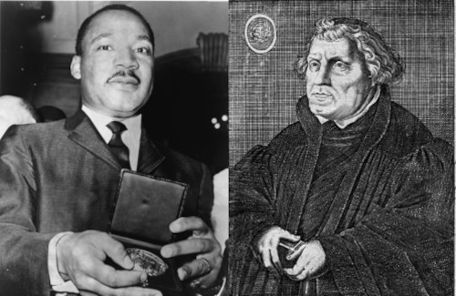 | It's easy to see why everyone confuses American Baptist minister and civil rights activist Dr. Martin Luther King Jr. (1929-1968) with Protestant Reformation kickstarter Martin Luther (1483-1546). Actually, MLK was born Michael Jr. and his father renamed them both to Martin Luther after visiting Nazi Germany during the 1934 Baptist World Alliance. | ||
