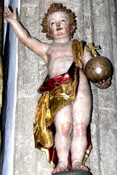 We do, however, speak a message of wisdom among the mature, but not the wisdom of this age or of the rulers of this age, who are coming to nothing. No, we declare God's wisdom, a mystery that has been hidden and that God destined for our glory before time began. None of the rulers of this age understood it, for if they had, they would not have crucified the Lord of glory. However, as it is written: "What no eye has seen, what no ear has heard, and what no human mind has conceived" -- the things God has prepared for those who love him -- these are the things God has revealed to us by his Spirit. The Spirit searches all things, even the deep things of God. (1 Corinthians 2:6-10, NIV) | ![]() Adrian's wife, Natalia, made off with one of his hands after his execution. | ![]() Casimir is depicted with three hands because he was so giving. | ||